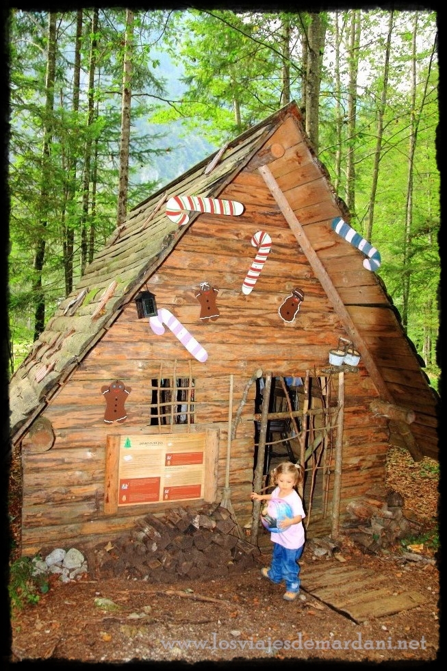 Íbamos a dirección a la cascada pero de repente vemos en el lado izquierdo de la carretera una señal que ponía Pravljični gozd. Algo que si que había mirado su página al hacer la ruta; era el poblado de los cuentos de hadas,  Pravljični gozd. En realidad lo que vimos fue una casa preciosa que era un restaurante. Pero luego al entrar en el aparcamiento vimos un parque de niños y allí que fuimos.