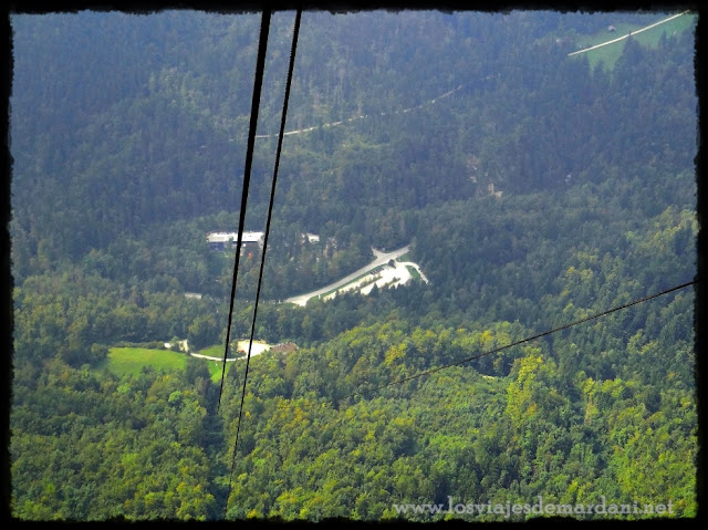 Nos montamos en el teleférico construido en 1963, que la verdad parecía bastante antiguo, con algunos cristales rajados y con el cristal muy desgastados y algo sucio, por lo que la subida no se apreciaba bien el paisaje. Además daba un poco de miedito al verlo en tan malas condiciones, pero nooooo. Todo perfecto.