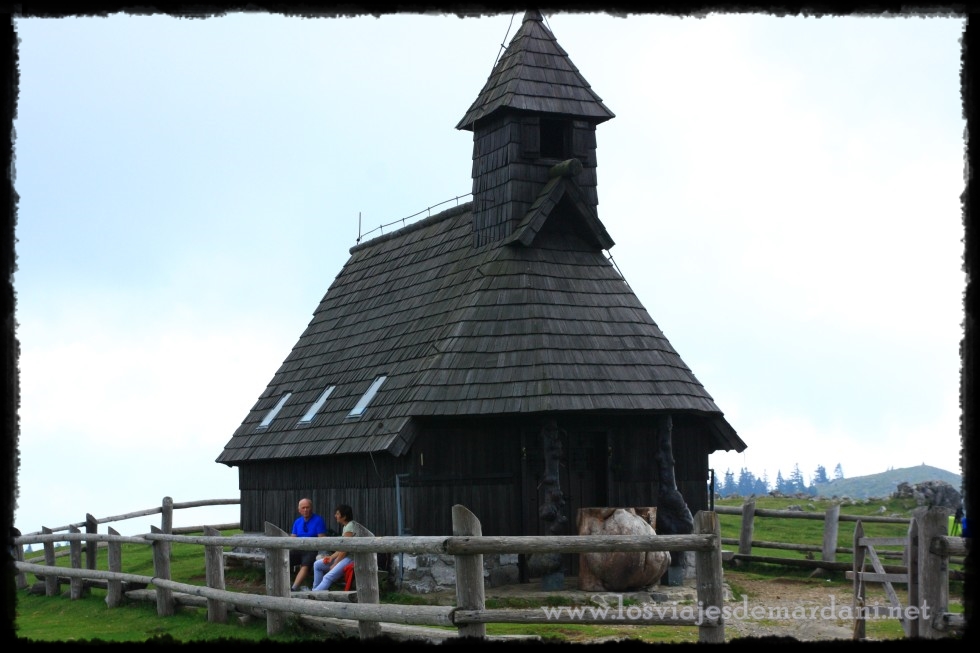 Llegamos hasta La Capilla de madera de la Virgen de las Nieves “Marija Snezna” cerrada a cal y canto. Lo bueno que la forma de su puerta deja ver por completo su interior.